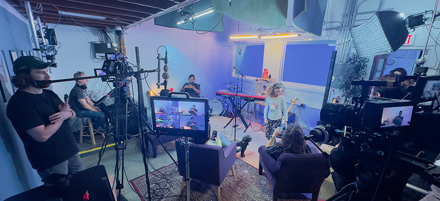Brian: We recently completed a pilot. It was a multi-camera shoot for a green screen virtual production involving three 4K camera feeds, which were fed into a live compositor, with Unreal Engine machines also fed into them. Improv actors reacted to what was being composited behind them. This required precise coordination across the stage, so we placed monitors strategically, overhead, at the ground level, and out of camera lines, which enabled performers, operators, and crew to all see the correct feeds in real time regardless of their location on stage. We also had a small sit-in audience.