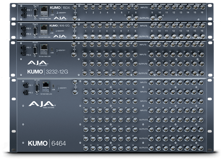 KUMO SDI routers range from 16x16 to 64x64 with convenient control and salvo recall from the KUMO CP control panels.