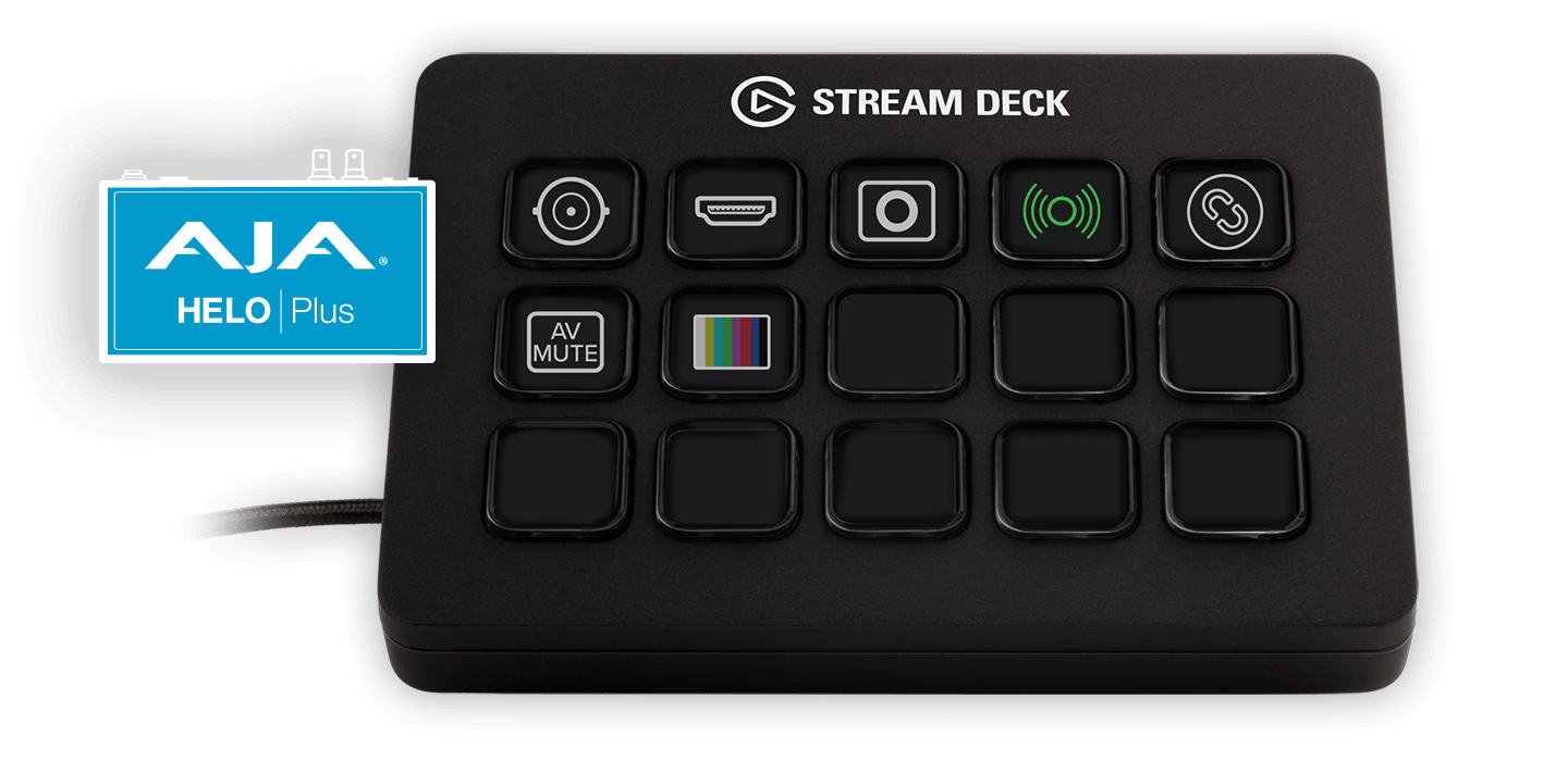 To find out more and download the AJA Stream Deck Plugin, please visit the Elgato Marketplace. Also, please visit our support page to download the Stream Deck / HELO Plus Stream Deck Plugin Guide.