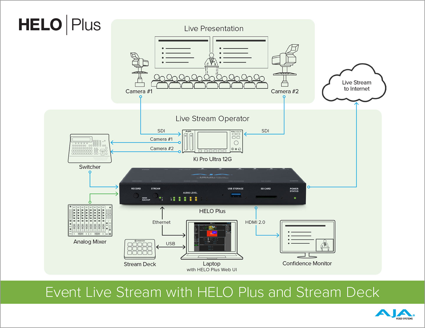 Get the new Stream Deck plug-in for HELO Plus! Creators and AV producers around the world have embraced Elgato’s Stream Deck external device controllers for their ease of use and ability to speed up productions by bringing common software and hardware actions to push button simplicity. To find out more and download the AJA Stream Deck Plugin, please visit the Elgato Marketplace. Also, please visit our support page to download the Stream Deck / HELO Plus Stream Deck Plugin Guide.