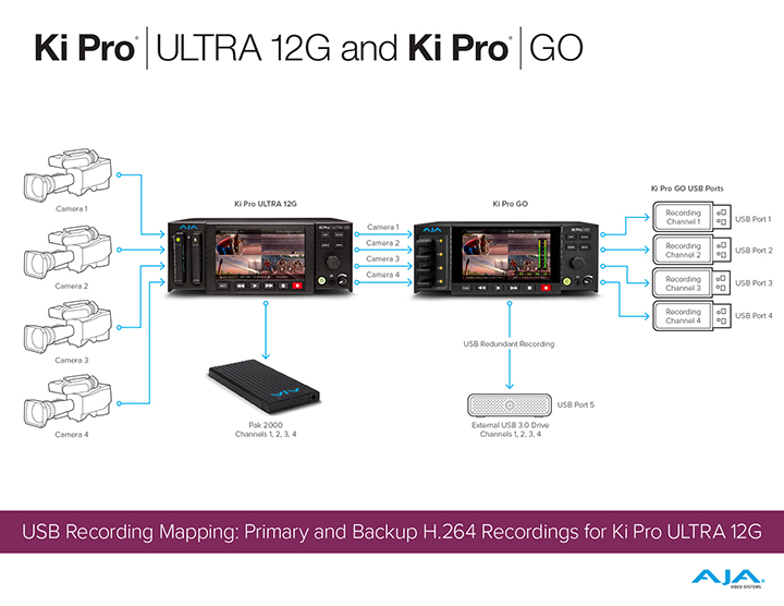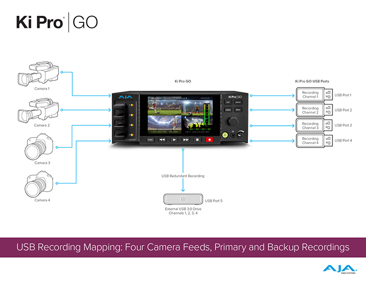 Ki Pro GO offers a large matrix of possibilities for redundant recording needs.