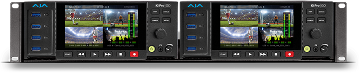 Two Ki Pro GOs conveniently fit side by side for easy 2RU rack mounting for workflows that can take advantage of rack mounting, from facilities to flypacks.