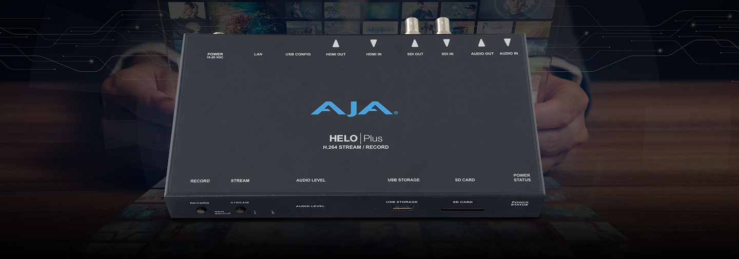 Higher-quality cameras offer SDI or HDMI outputs that can be connected to a media server through hardware devices such as AJA’s U-TAPs, which offer USB 3.0 connectivity, Io 4K Plus with Thunderbolt 3 interfaces, or via direct plug-in PCIe cards like the AJA KONA line. There are also standalone appliances such as HELO Plus that will encode and stream H.264 from an HDMI or SDI video signal, with simultaneous recording to a network share or removable media.